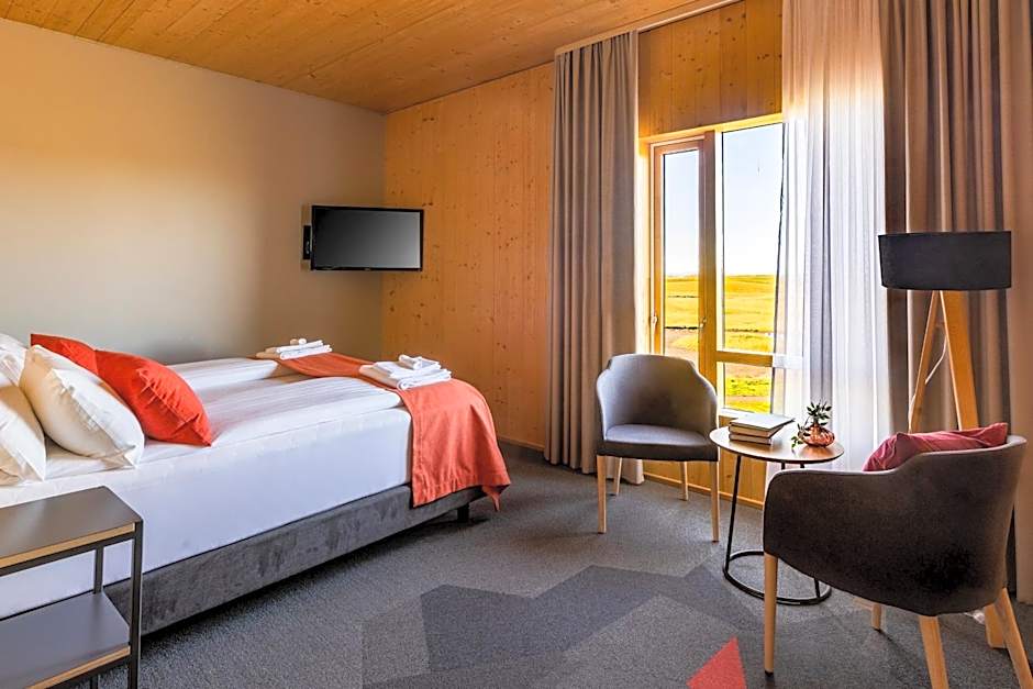 Utover grunnleggende komfort tilbyr hotellet et treningssenter (gratis), møte-/bankettfasiliteter (gratis) og gratis privat parkering i tillegg til gratis parkering på stedet. Valgfrie tillegg inkluderer spa og badstue, massasje, ridning og barnevennlige måltider, alle mot ekstra kostnad. Tilgjengeligheten er gjestevennlig med rullestoltilgang, heis til øvre etasjer og gratis toalettartikler, mens en hage, piknikområde og varierte utsikter fullfører den islandske flukten.